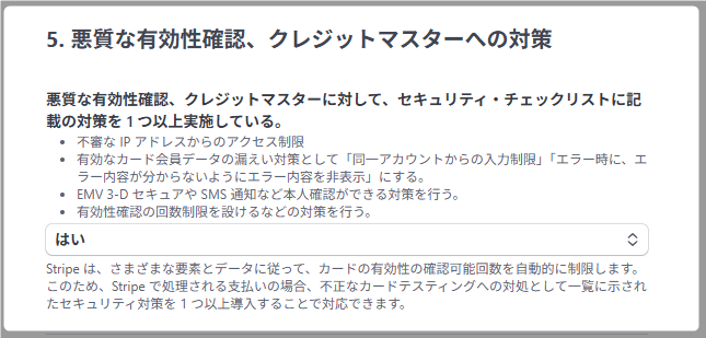 → これはStripe自身が対策してくれています。 チェックリストの注釈にもその旨が書かれています。