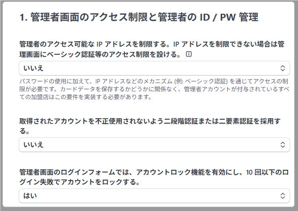 1. 管理者画面のアクセス制限と管理者のID/PW管理